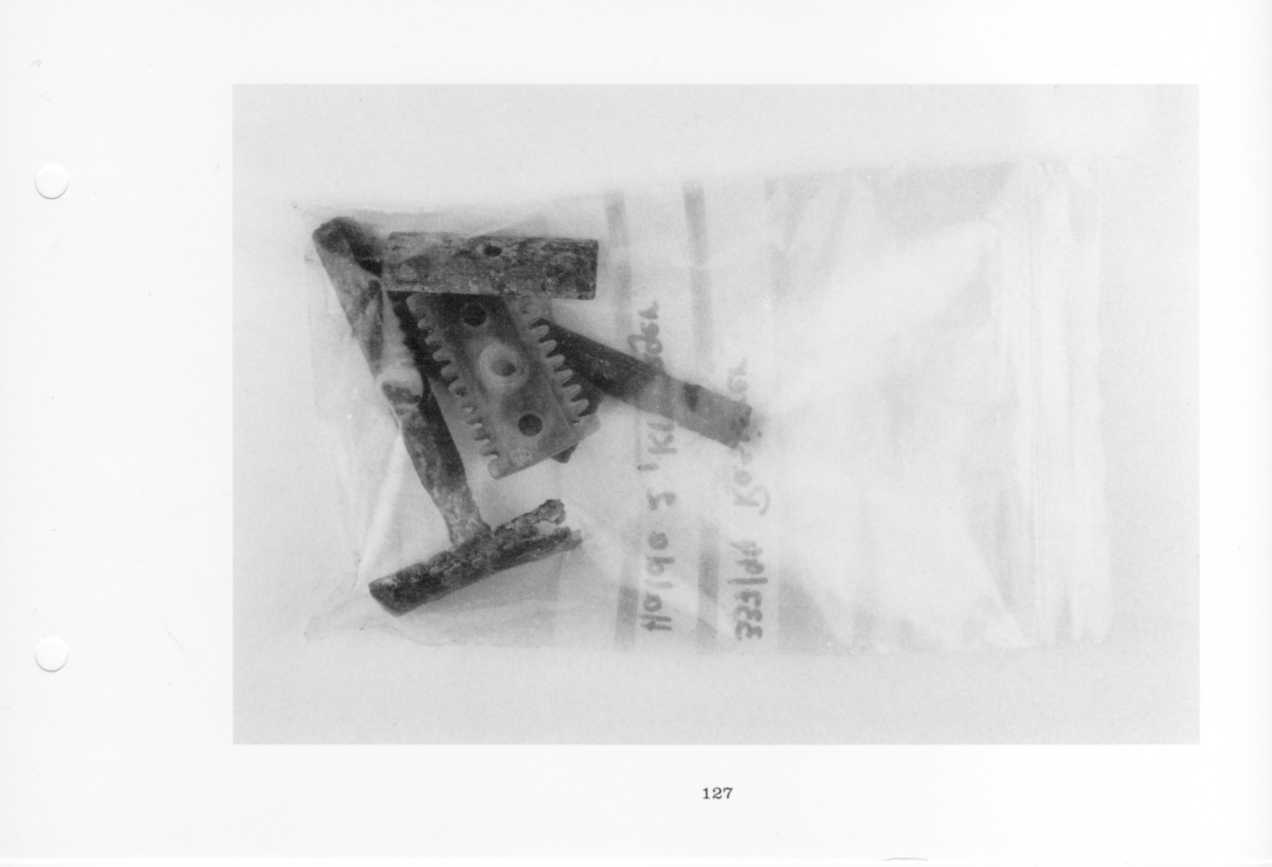 Nun hätte Salmon aus diesem Material eine beeindruckende konzeptuelle Arbeit machen können, welche, in Beschränkung auf das Zeigen der Gegenstände, diese bis ins kleinste Detail perfekt ausgeleuchtet inszeniert und damit auf die emotionale Überwältigung des Betrachters gezielt hätte. Aber Salmon wählt für Ihre Arbeit, die sowohl in Installationen für Ausstellungen, als auch in diesem Katalog besteht, einen anderen Weg. Einen Weg, der Irritationen mit einbezieht, der es dem Betrachter nicht ganz so einfach macht, zu klassifizieren, was er da sieht. Denn neben den Kämmen, Rasierpinseln, Gebissen und Brillen, die oft nur noch teilweise und in Bruchstücken erhalten sind, finden sich auch viele andere „Erinnerungsstücke“ in diesem Katalog der materiellen Überreste menschlichen Lebens: Porzellan mit einem Hakenkreuz auf der Unterseite und drei Seiten später Geschirr mit dem Davidstern; Scheren und Rasierappate; ein Stern mit dem französischen Aufdruck Juif und ein Kartonrest mit einem Label, das ihn als Verpackung von Giftgas ausweist. Es gibt auch drei auf Flohmärkten gefundene fotografische Aufnahmen in diesem Katalog, welche die Ordnung der Dinge, welche zunächst so einfach zu sein scheint, endgültig aufbrechen. Egal ob man den Ordner von vorn (startend mit den Kämmen, nach den deutschen und englischen Texten) oder von hinten (startend mit den Brillen, nach dem Text in Ivrit) durchblättert.